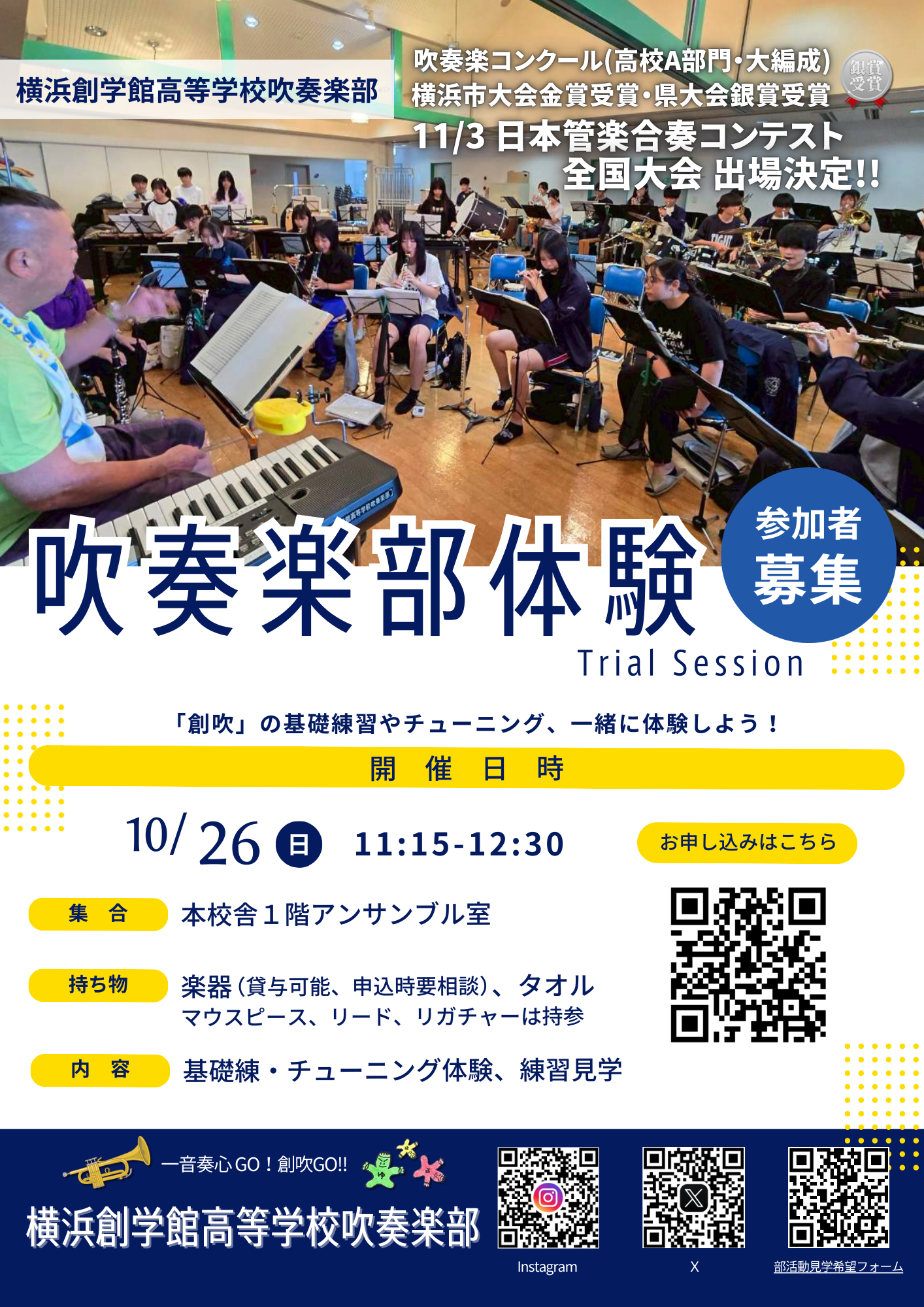 なお、11月3日(月・祝)は学校説明会の日と重なるため、吹奏楽部は不在となります。