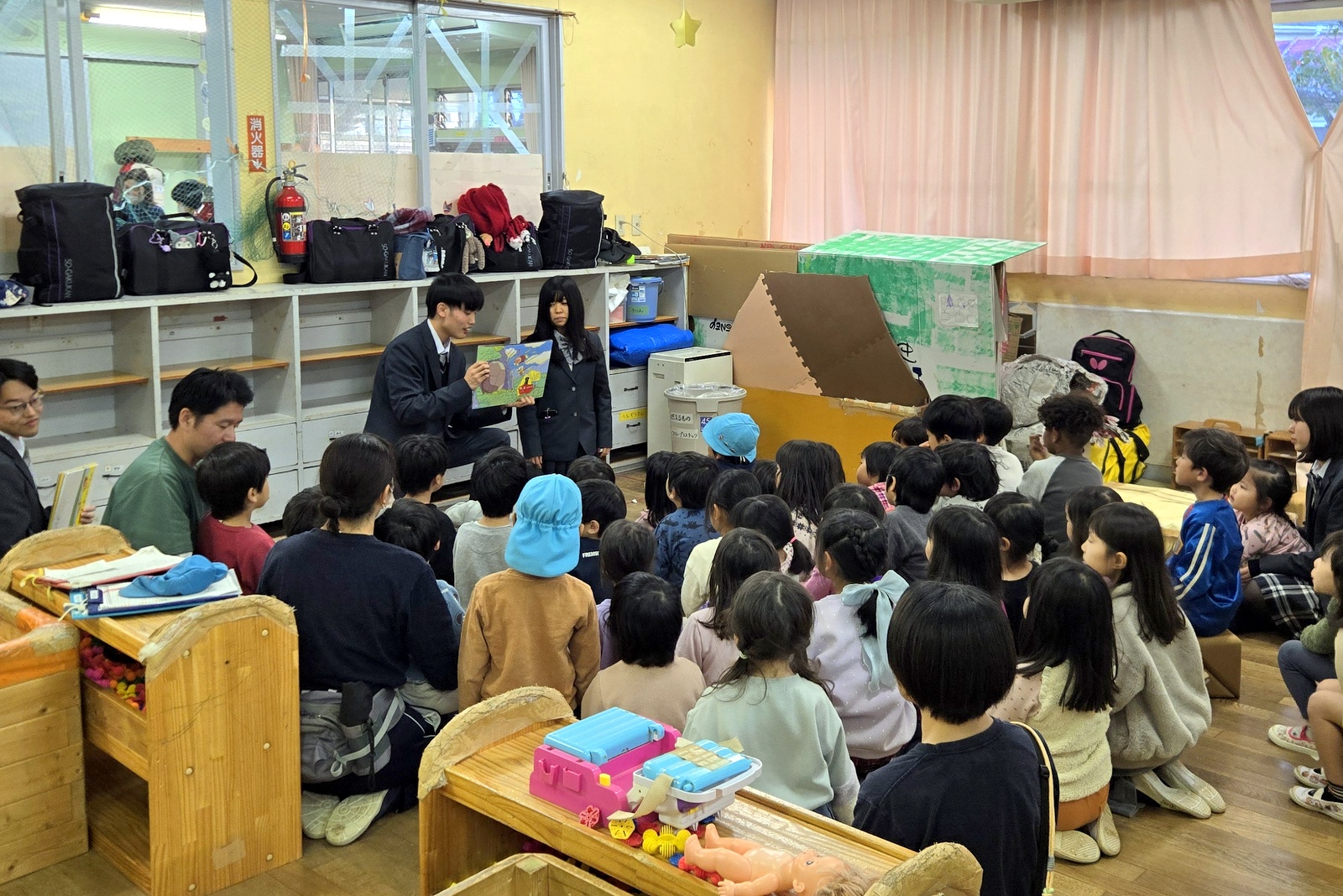 ボランティア委員による紙芝居では園児たちが楽しそうに聞いてくれました。
