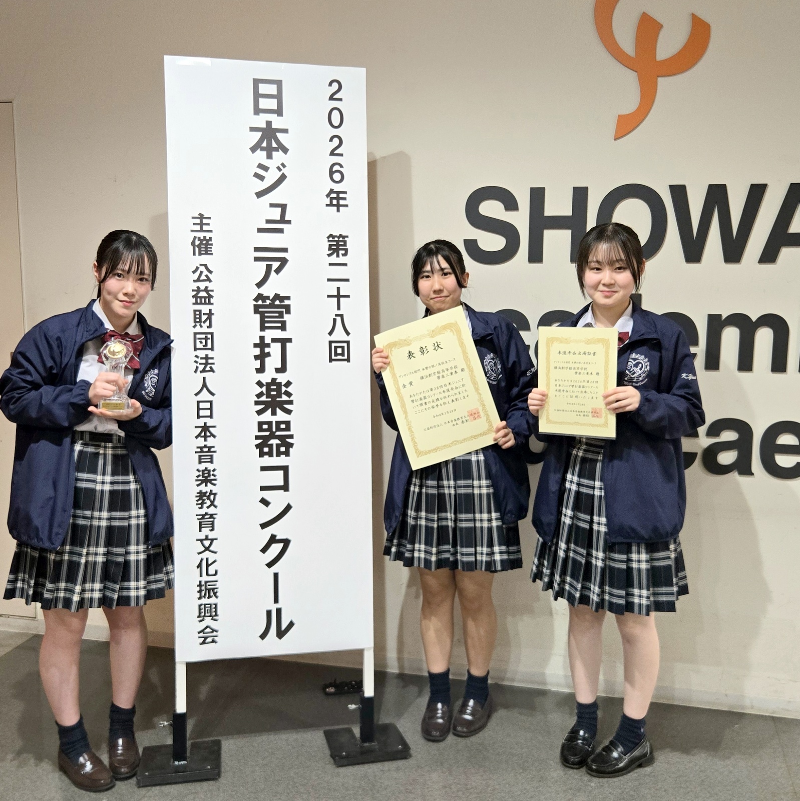 3月28日(土)、昭和音楽大学ユリホールにて行われた『第28回日本ジュニア管打楽器コンクール本選考会(全国大会)木管の部<高校生コース>』に、本校吹奏楽部の管楽三重奏が出場しました。